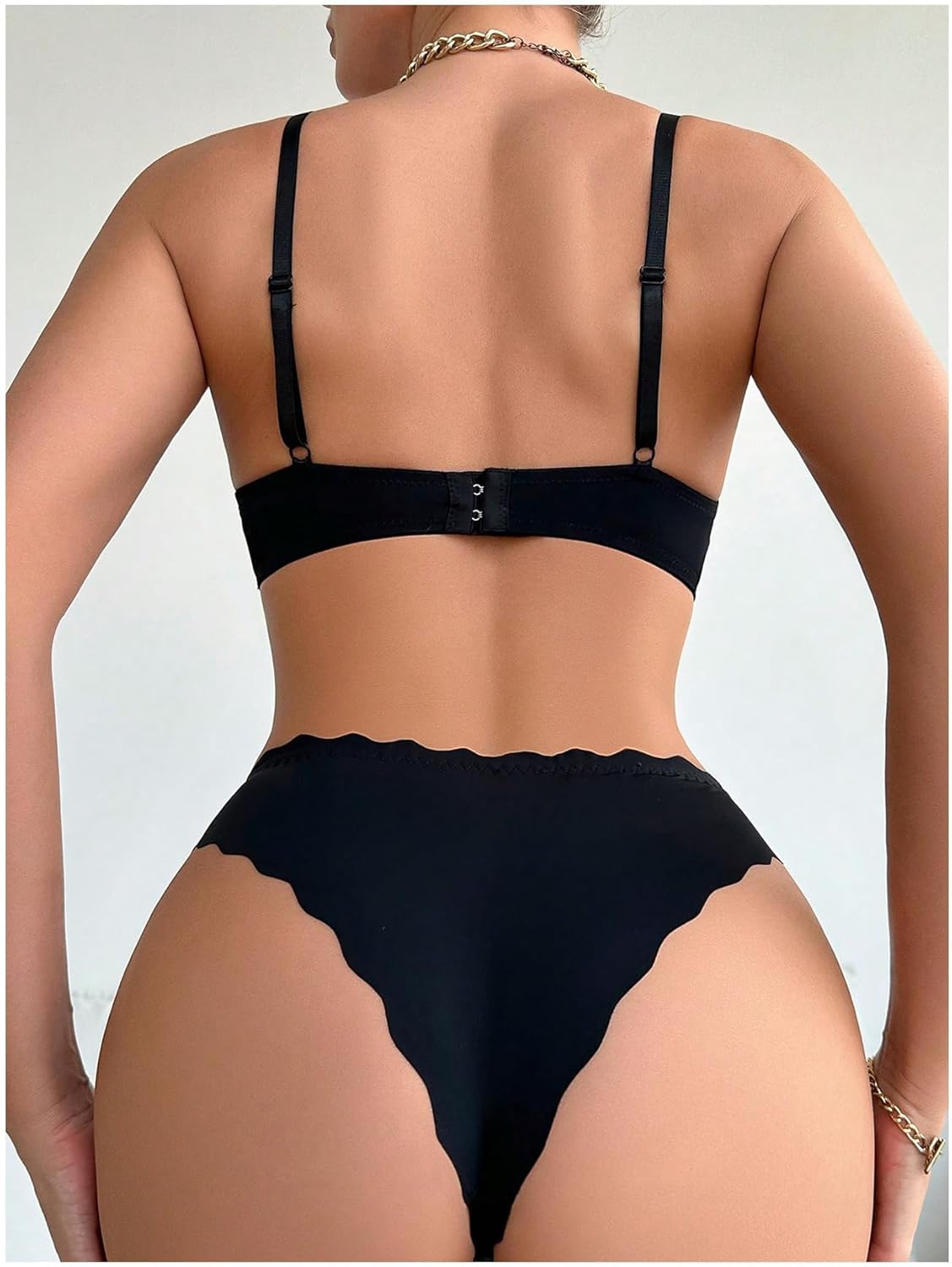 - Lingerie sets for women, womens lingerie, 2 piece set, underwire bra, low rise thongs, lightly lined, solid color, scallop trim, soft, comfy